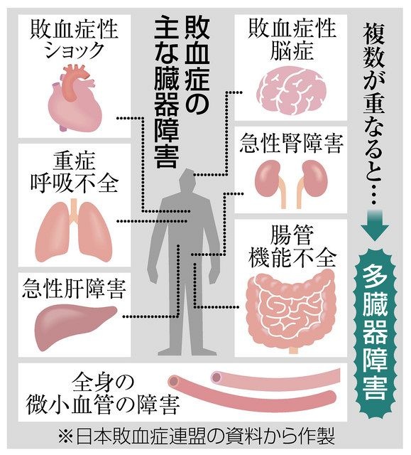 敗血症が更に進行すると、多臓器不全や播種性血管内凝固症候群(DIC)などの深刻な合併症を引き起こす可能性があります。